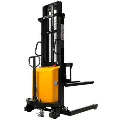 Manual stackers use foot or hand pumps to raise the forks hydraulically. Electric models feature battery-powered lift mechanisms for easier operation and are better suited to frequent or heavier loads.
