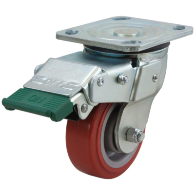 They are available in wheel diameters of 100mm, 125mm, 150mm or 200mm. These heavy duty castors are available in swivel, rigid, swivel with brake, swivel with directional lock, swivel with side brake or swivel with swivel lock and brake combinations. Depending on the wheel type, bearing types include ball bearing, bronze bush, oilless DU bush, plain bore, roller bearing or stainless steel roller bearing.