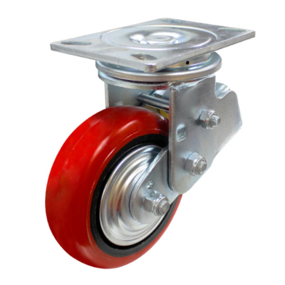 - Polyurethane tyred wheels on an iron core steel dust cap.