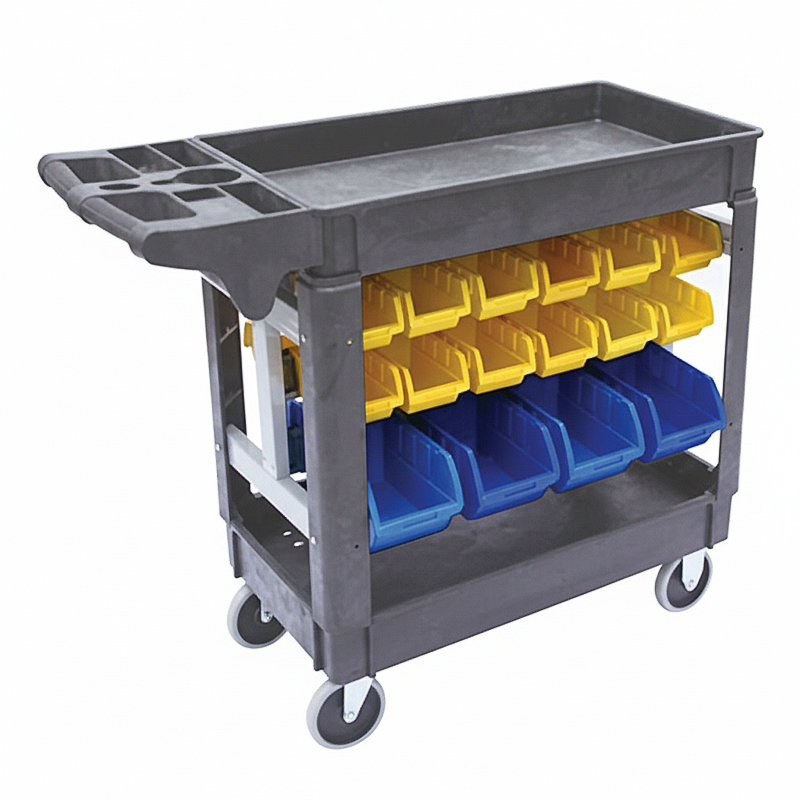 This warehouse-picker trolley is designed for operational environments where picking, moving and staging of parts, kits or stock is frequent. It’s built with a rigid frame and two polypropylene deck tiers: a lower deck for bulk items and an upper shelf at approximately 850mm height for easier reach and organisation. The decks are made of heavy-duty, lipped-edge polypropylene that resists dents, chips and rust, making it suitable for warehouse, factory floor, back-of-house, maintenance or tooling rooms. The full footprint of approximately 1185 × 650mm gives ample load area while remaining manoeuvrable in aisles and picking lanes.